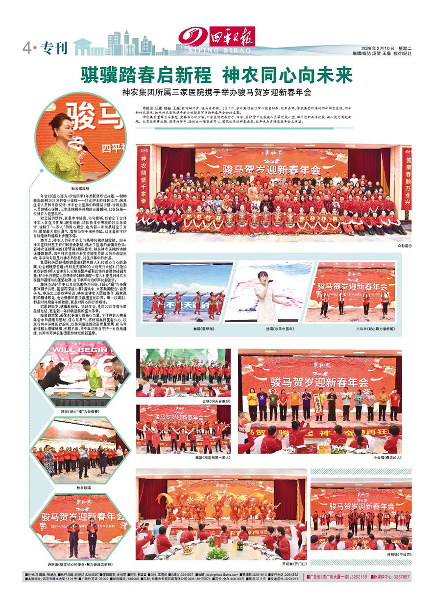 银蛇辞旧岁,骏马启新程。2 月 7 日,吉平宾馆会议中心暖意融融、欢声鼎沸,神农集团三家医院骏马贺岁迎新春年会如约启幕。